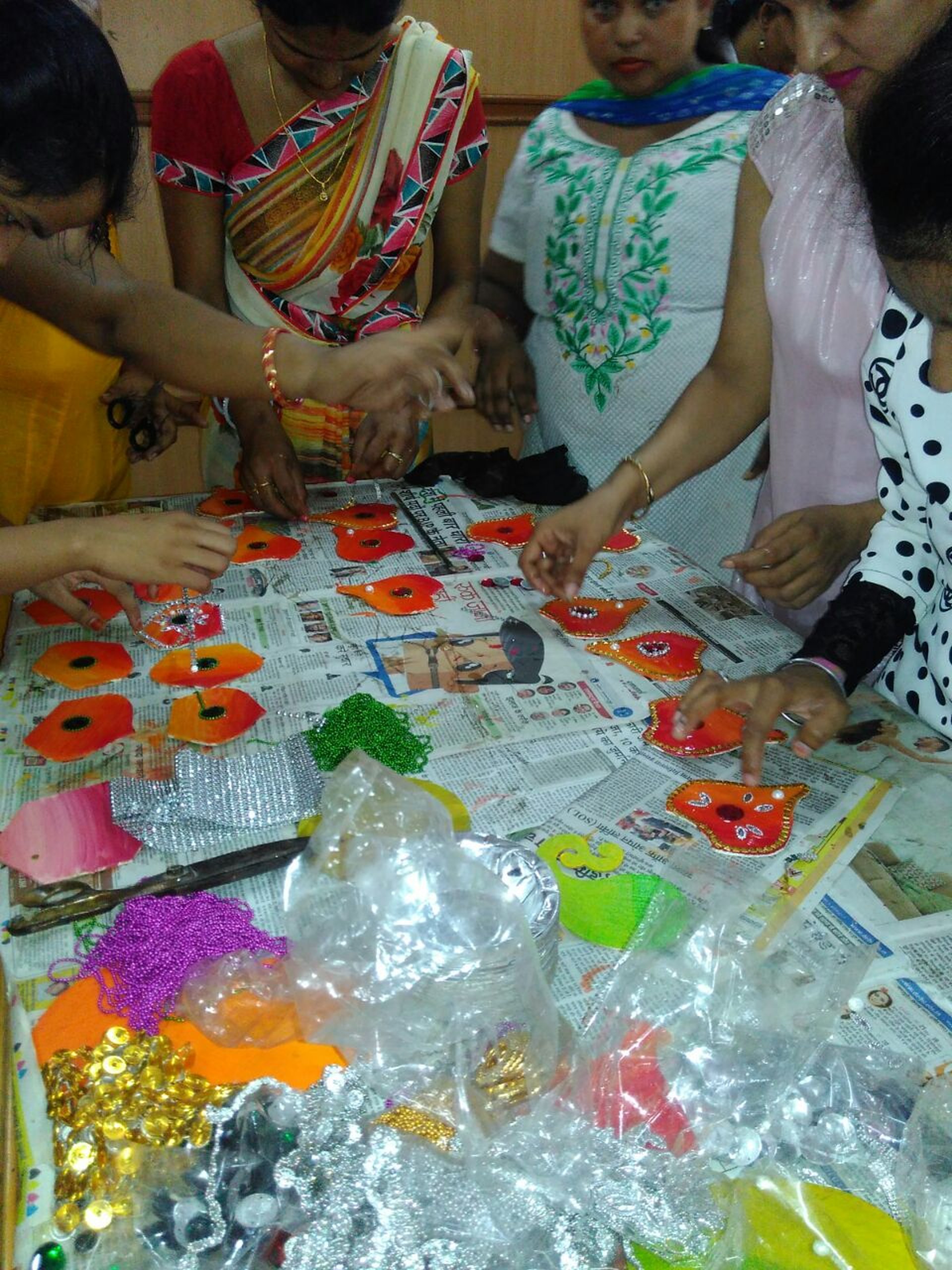 Participants learn a wide range of crafts such as paper craft, fabric painting, handmade jewellery, quilling, embroidery, gift items, eco-friendly décor products, and more.